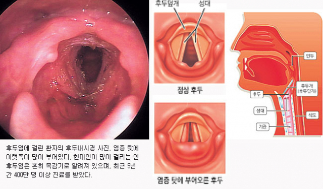 목이 아프다고 생각하시면 됩니다. 처음에는 가벼운 기침으로 시작하지만, 심해질수록 통증이 발생합니다. 그리고 그 시간이 길어지면 목소리가 쉬어지거나 전혀 나오지 않을 수도 있습니다. 처음에는 뭔가를 먹을 때 아프지만 나중에는 침을 삼키는 것만으로도 아프죠? 그리고 처음에는 아프다. 제가 하는 경우가 많습니다.