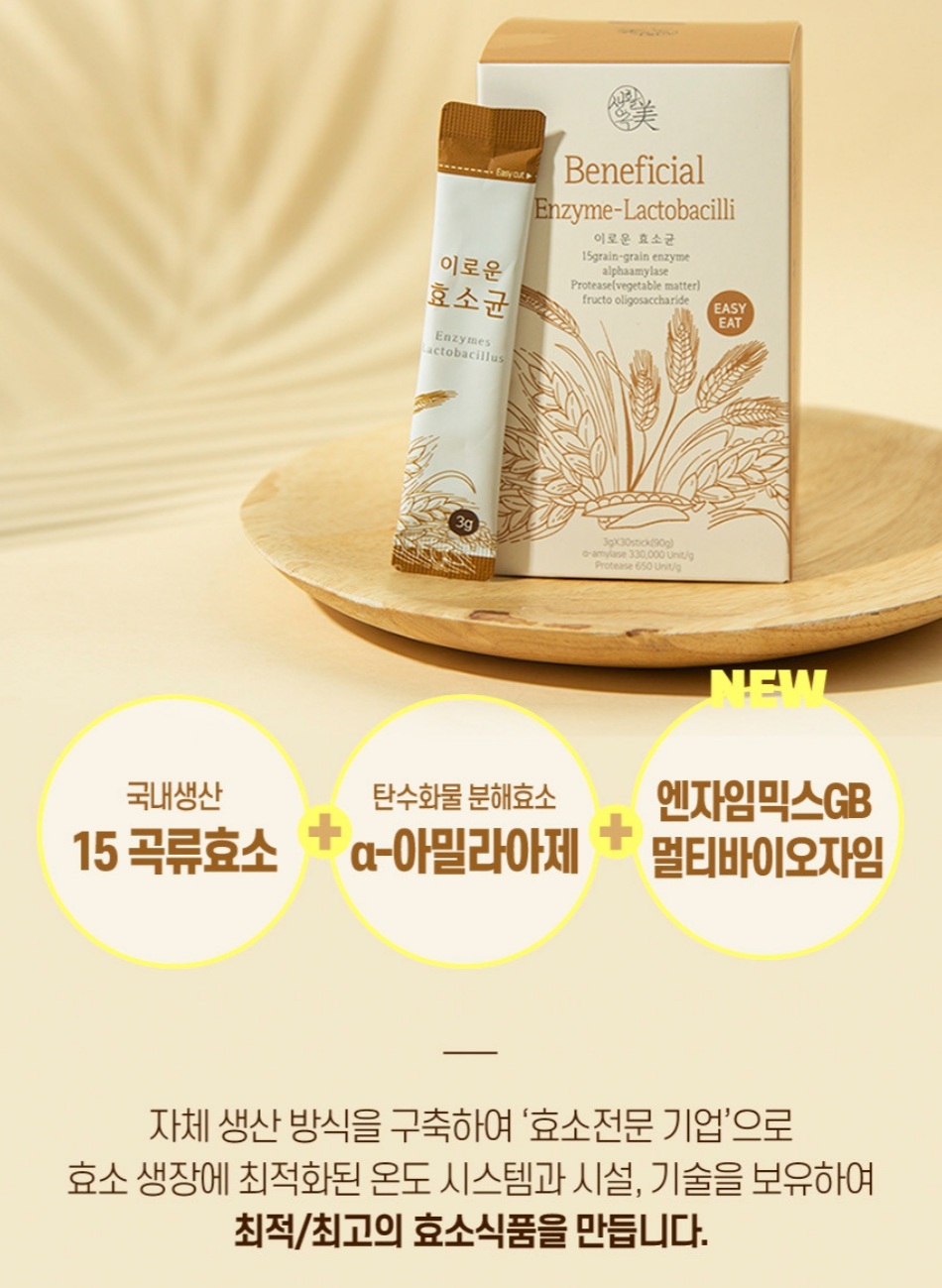 탄수화물 위주의 식습관에 맞게 설계한 100% 곡물 발효 효소로 섭취하면 배변 활동이 평소보다 원활해지고 평소보다 소화가 잘 되고 다이어트에도 도움이 된다고 합니다. 몸이 가벼워지는 느낌을 느낄 수 있을 것 같습니다!