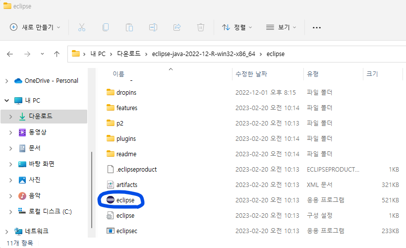 그리고 eclipse.exe를 실행합니다. (파일 확장자명이 표시되지 않는 경우, https://mainia.5104 이 링크와 같이 파일 확장자를 제공하십시오.)
