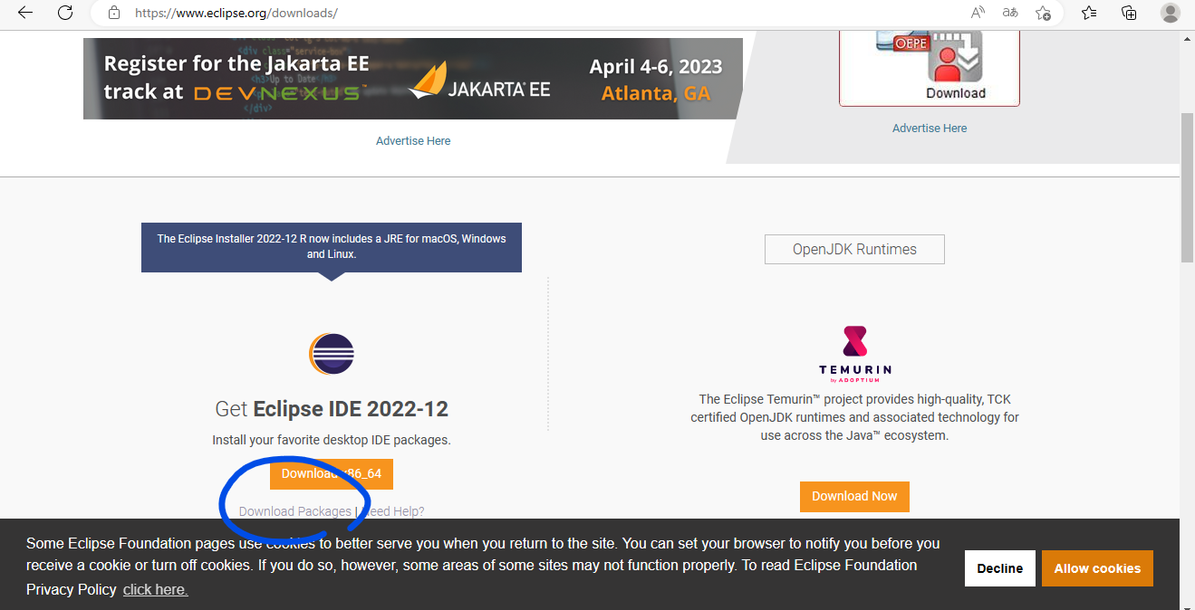 Eclipse IDE 하단에서 패키지 다운로드를 클릭합니다.