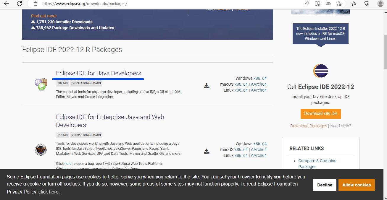 위의 페이지가 나타나면 Java 개발자용 Eclipse IDE에서 자신에게 맞는 운영 체제를 클릭합니다.