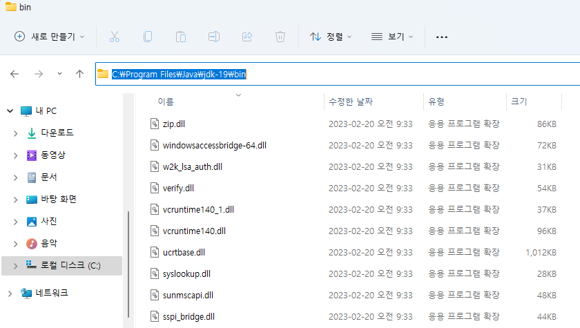 (내PC → C드라이브 → 프로그램 파일(*x86, 프로그램 파일만 해당) → 자바 → jdk-(버전 이름) → bin을 클릭하고 폴더 경로를 복사합니다.) 파일은 일반적으로 이 위치에 있습니다. 폴더 경로는 컴퓨터마다 다를 수 있습니다.