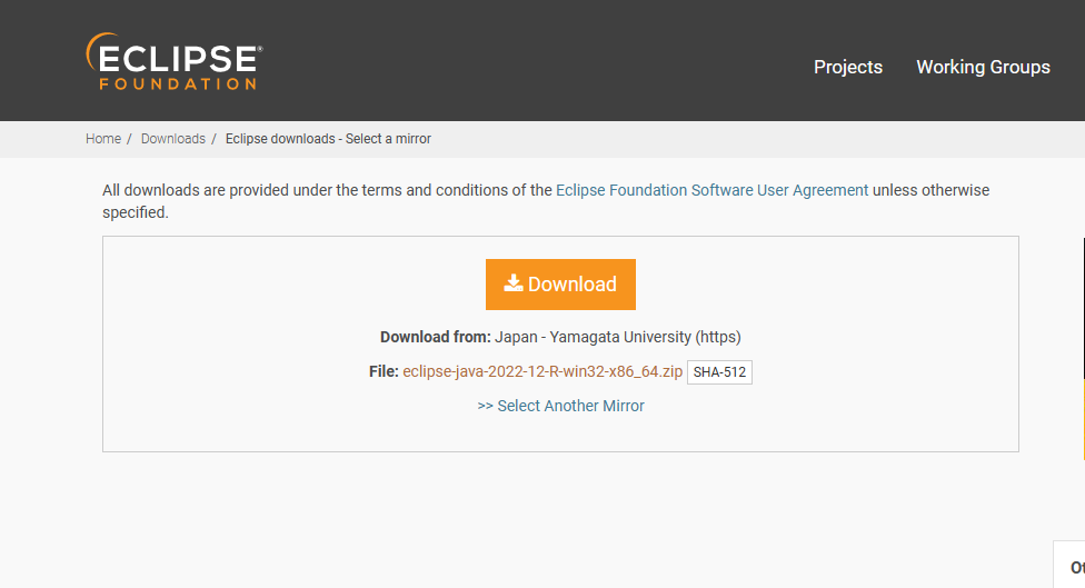 위의 페이지가 나타나면 Java 개발자용 Eclipse IDE에서 자신에게 맞는 운영 체제를 클릭합니다.